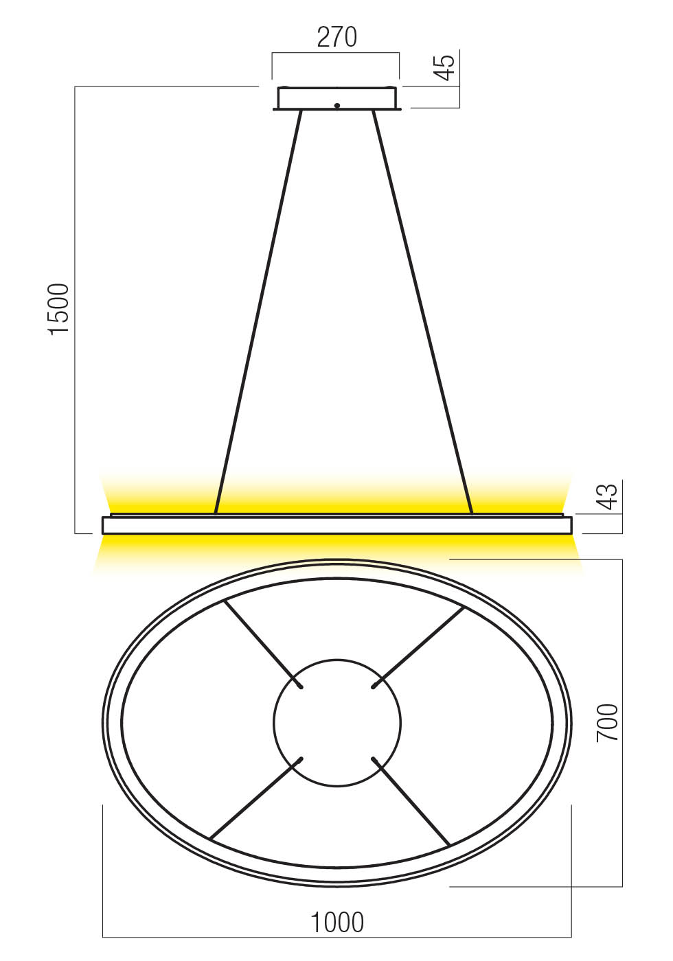 100W LED pakabinamas šviestuvas NOBU, juodas, 3000/4000K, dimeriuojamas, šviečia į viršų ir į apačią