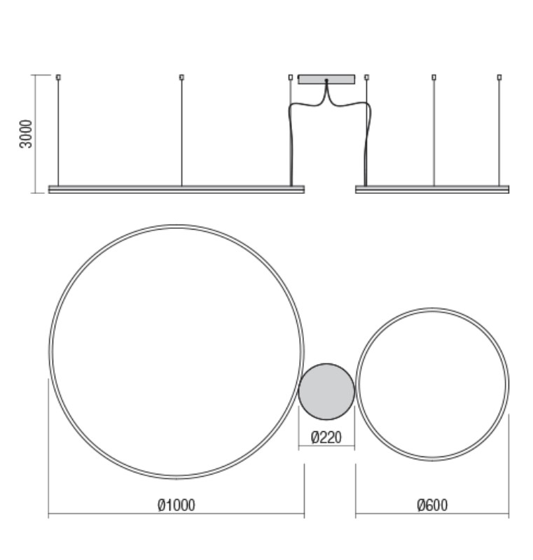 40,5+68W LED pakabinamas šviestuvas ORBIT, juodas, 3000K, dimeriuojamas