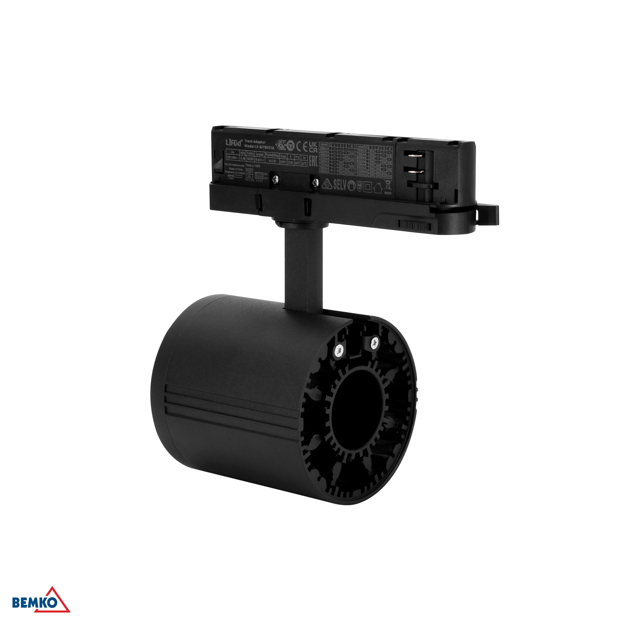 12-40W LED akcentinis šviestuvas į 3 fazių bėgelį VASKO, juodas, 4000K