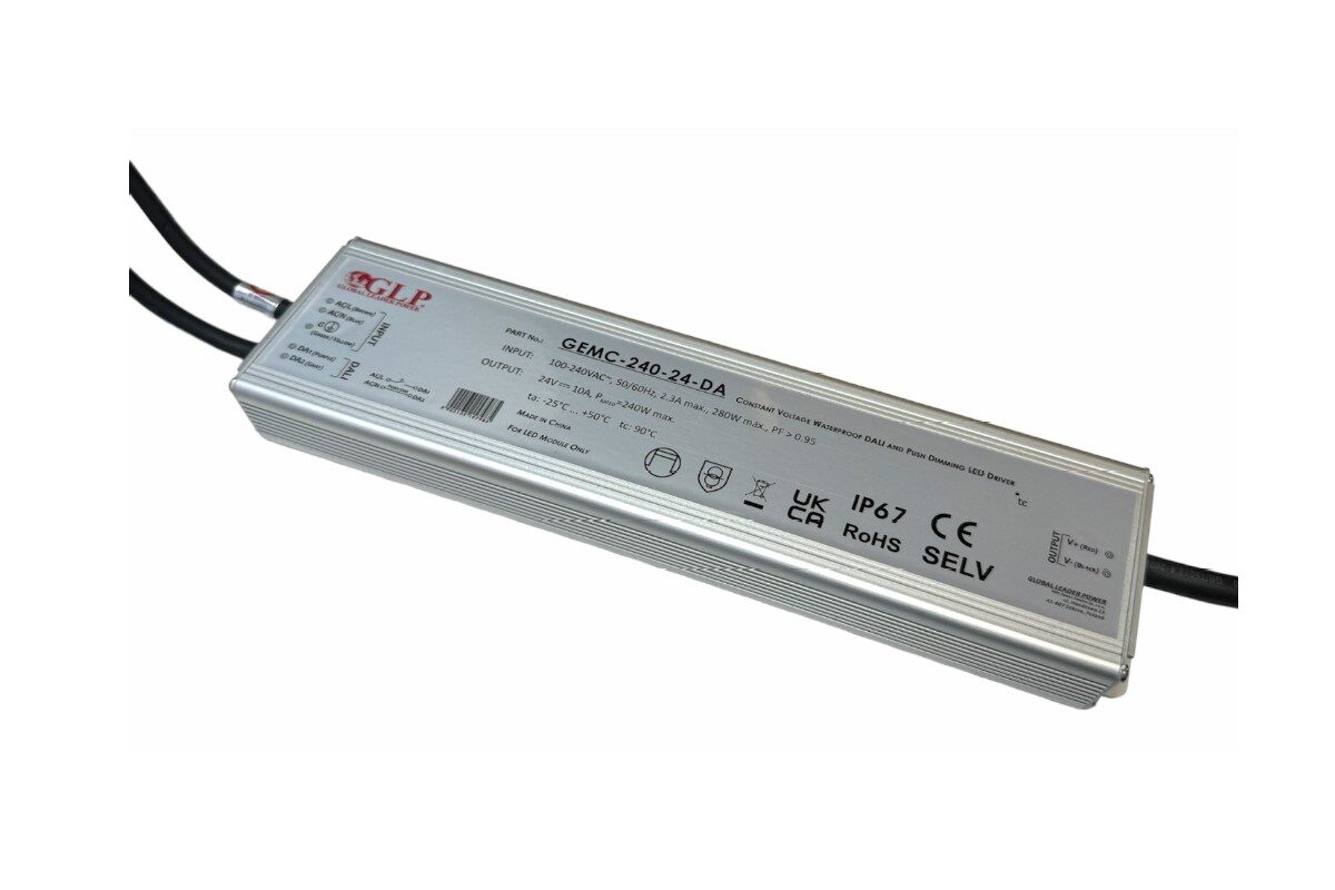 240W maitinimo šaltinis GEMC, 24V, IP67, DALI/PUSH