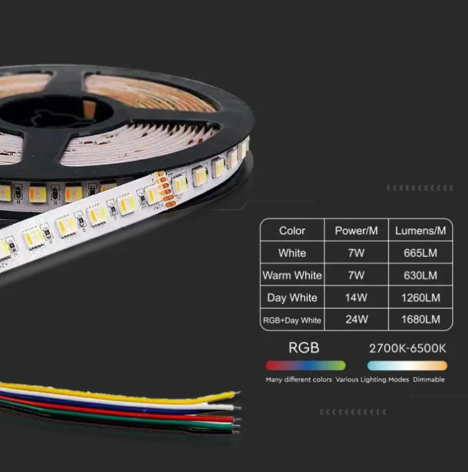 24W/m LED juosta, 60LED/m, 24V, 3IN1+RGB, IP20, 5 metrų ritė