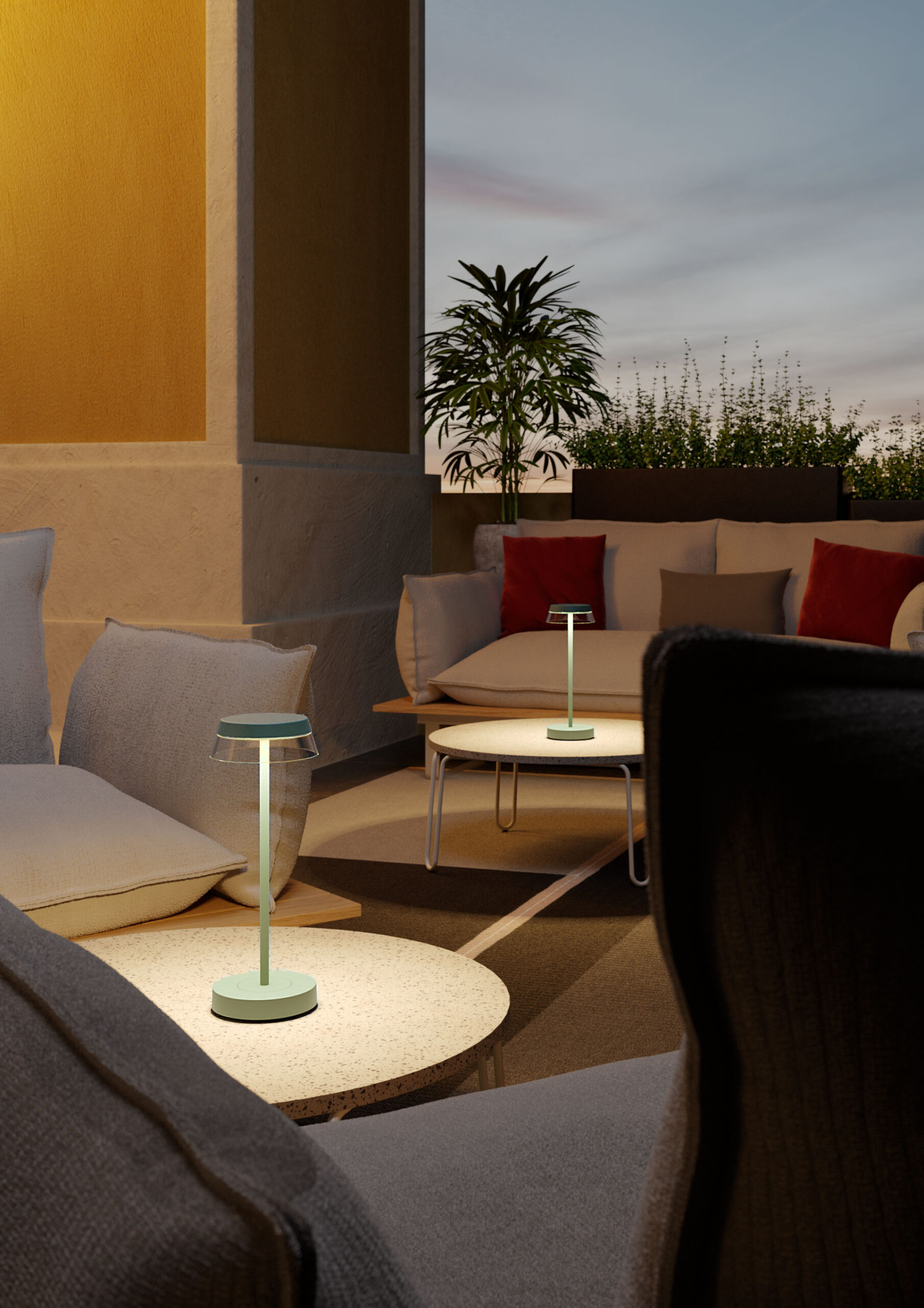 2,5W LED įkraunamas stalo šviestuvas ILUNA, žalias, 2700/3000K, IP65, dimeriuojamas, su USB jungtimi, 90309
