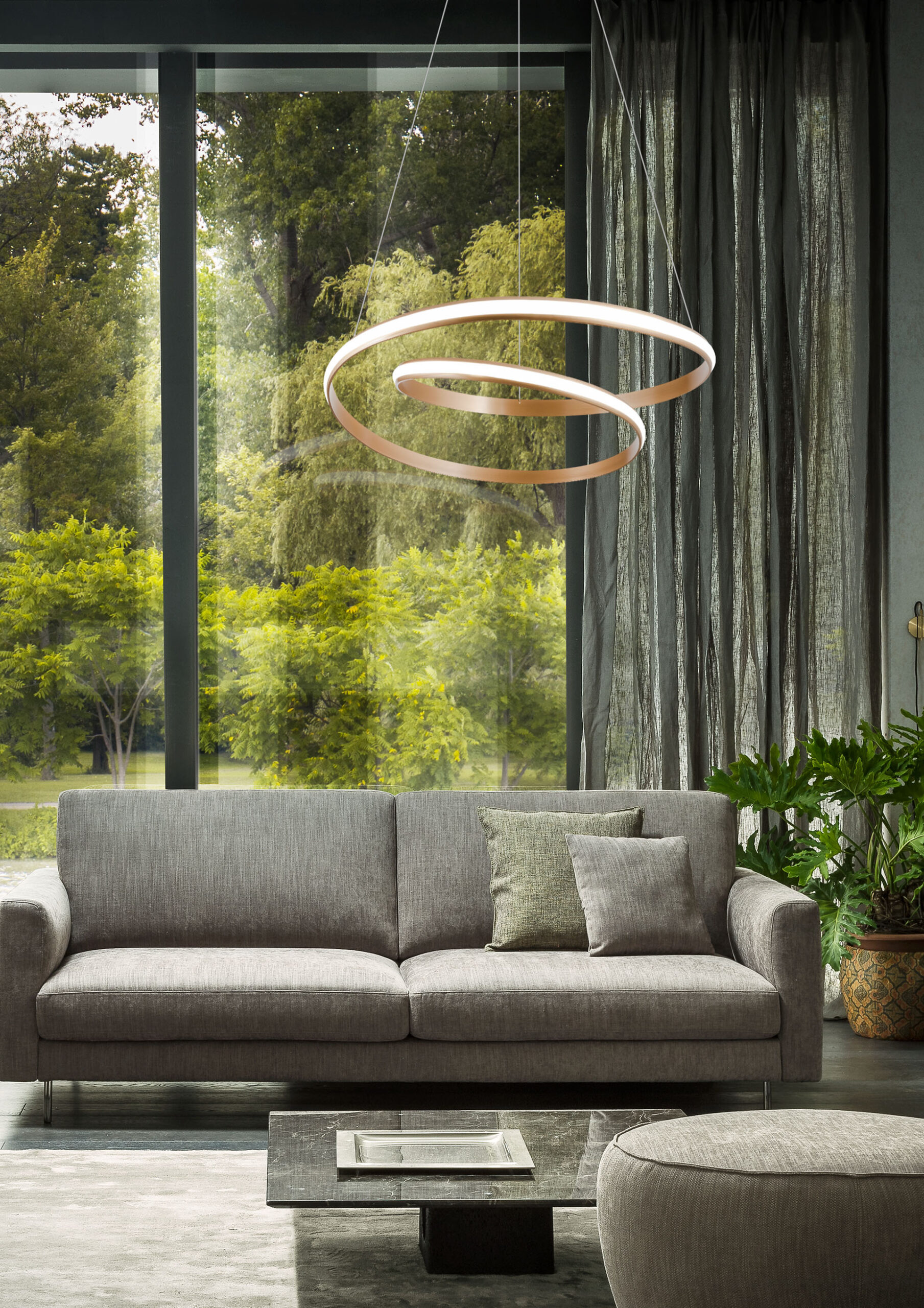35W LED pakabinamas šviestuvas TORSION, matinės bronzos sp., 4000K, dimeriuojamas