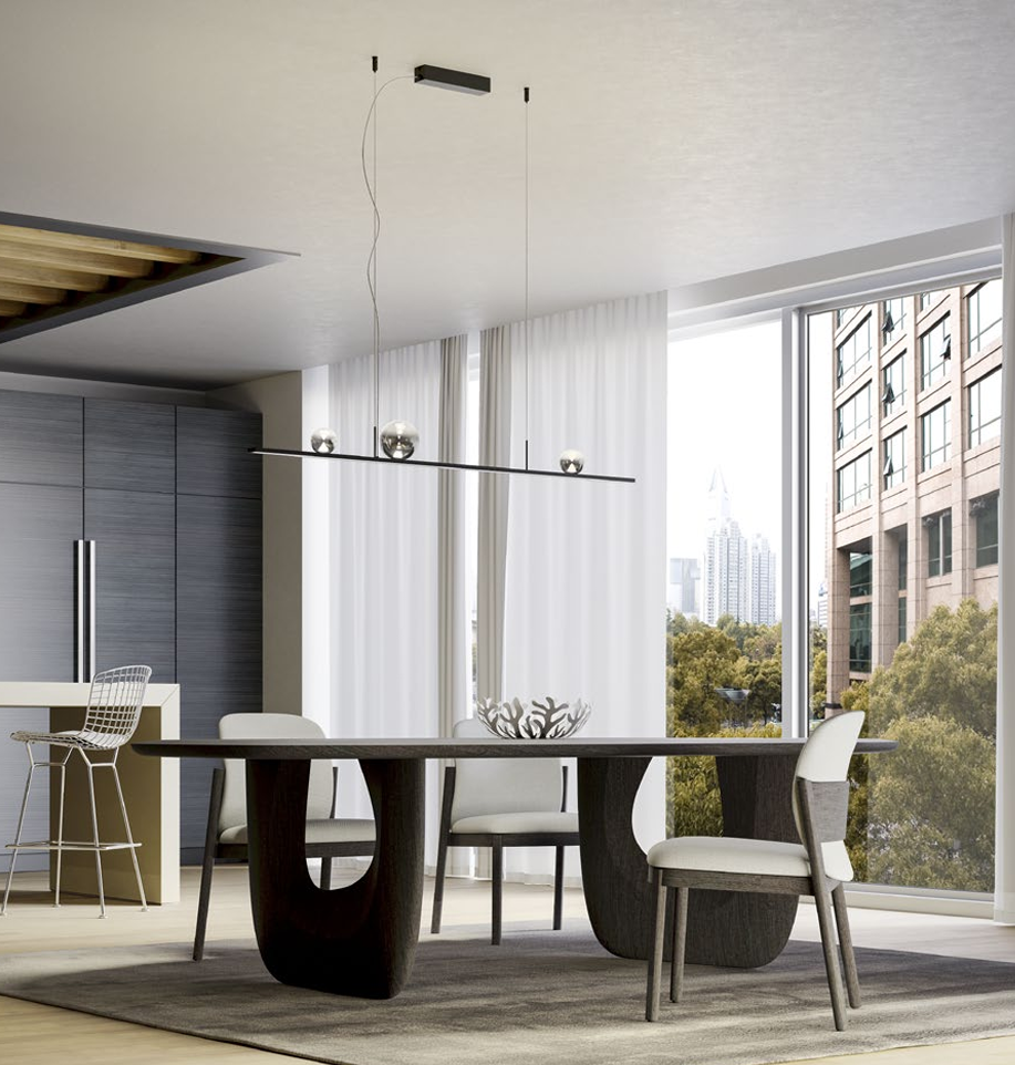 48W LED pakabinamas šviestuvas DUNE, juodu korpusu/dūmų sp. stiklas, 3000K, dimeriuojamas