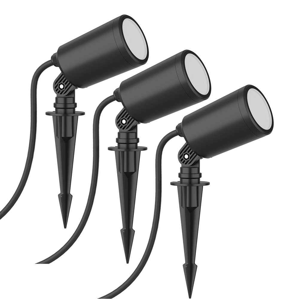 7W LED įsmeigiamas šviestuvas, juodas, suderinamas su AMAZON ALEXA ir GOOGLE HOME, 3000-6500K/RGB, 3vnt komplektas