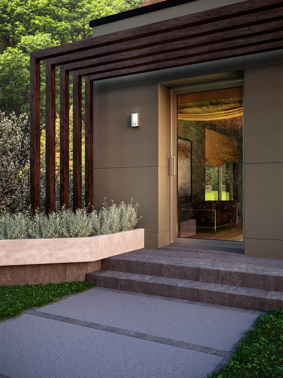 8W LED sieninis lauko šviestuvas WARP, tamsiai pilkas, 3000K, IP44, su judesio davikliu