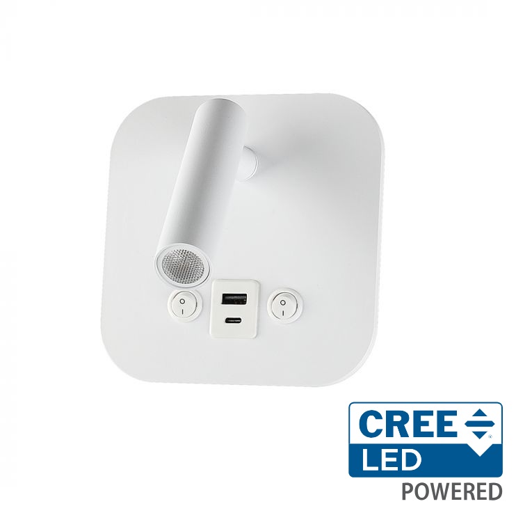 8W LED sieninis šviestuvas, baltas, 3000K, su USB/PD jungtimi, CREE LED chip