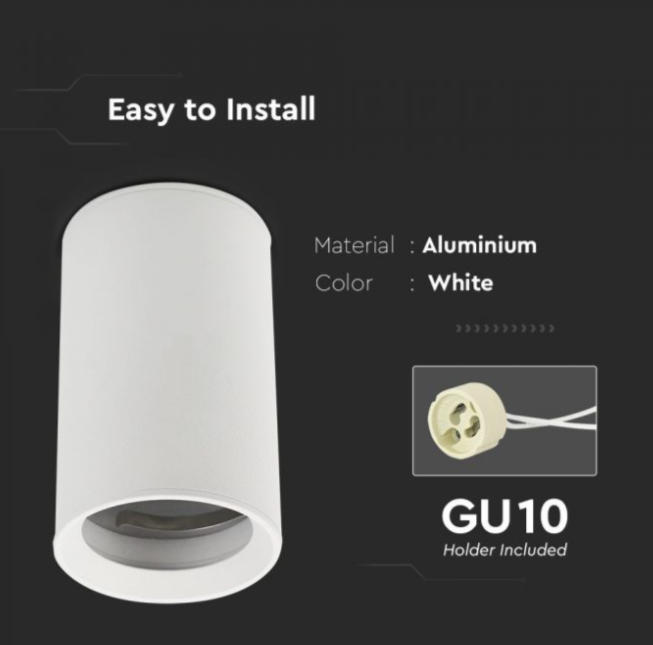 GU10 lemputės rėmelis V-TAC, baltas, aukštis 10cm