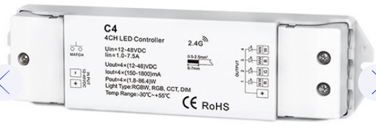 LED juostos valdiklis, 4 kanalų, RGB/RGBW, 4*300mA