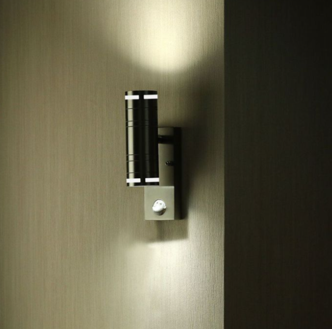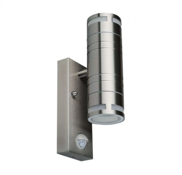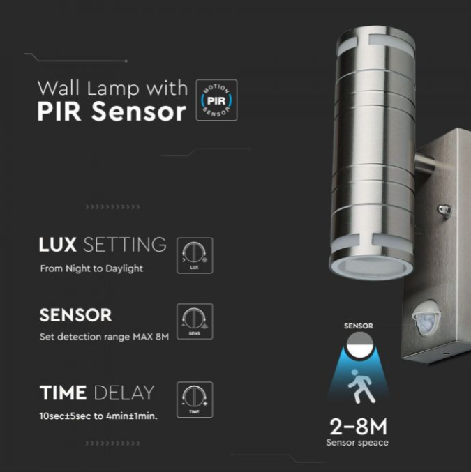 LED sieninis šviestuvas V-TAC su judesio davikliu, GU10, IP44, šviečia į viršų ir apačią, plieno spalvos
