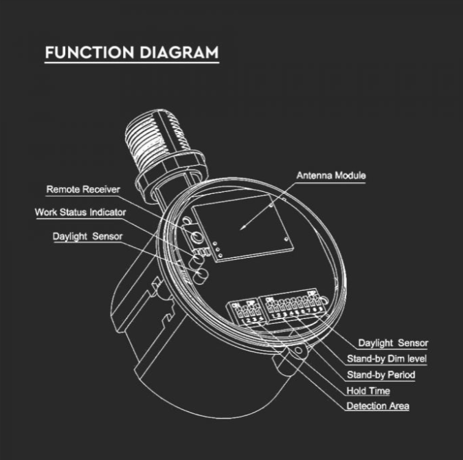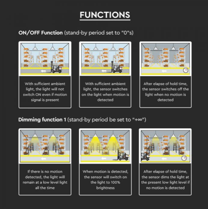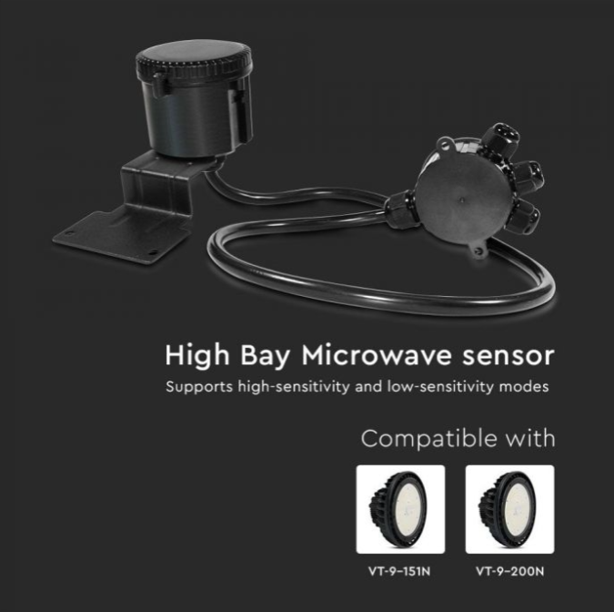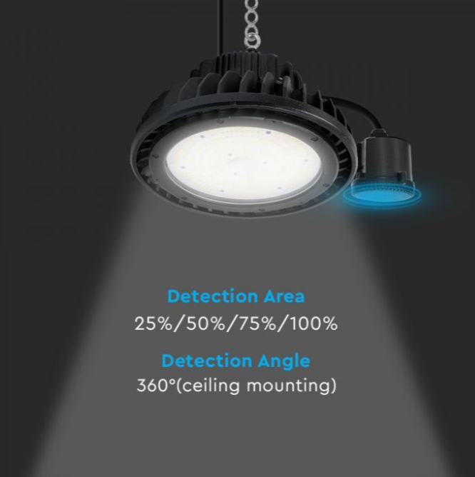 Mikrobangų judesio daviklis 140lm/W sandėlio šviestuvui, reguliuojamas jautrumas, IP65