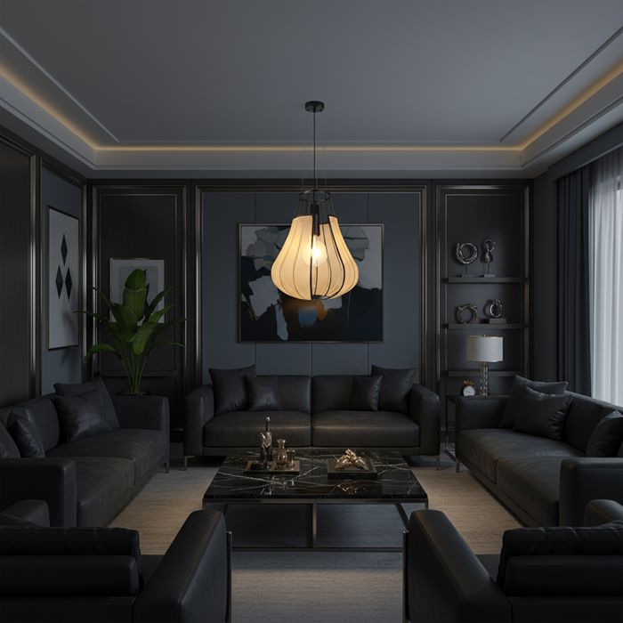 Pakabinamas šviestuvas, E27, juodos/smėlio sp., 420x500mm