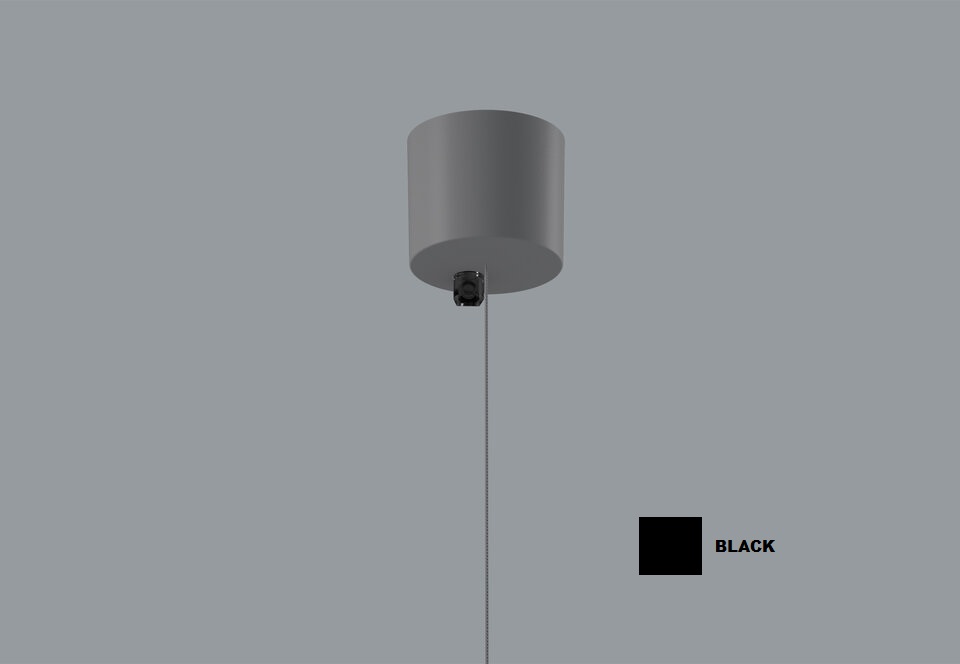 Pakabinamo linijinio šviestuvo laikiklis su užmaitinimu, juodas, 70mm skersmens, 1200mm trosas