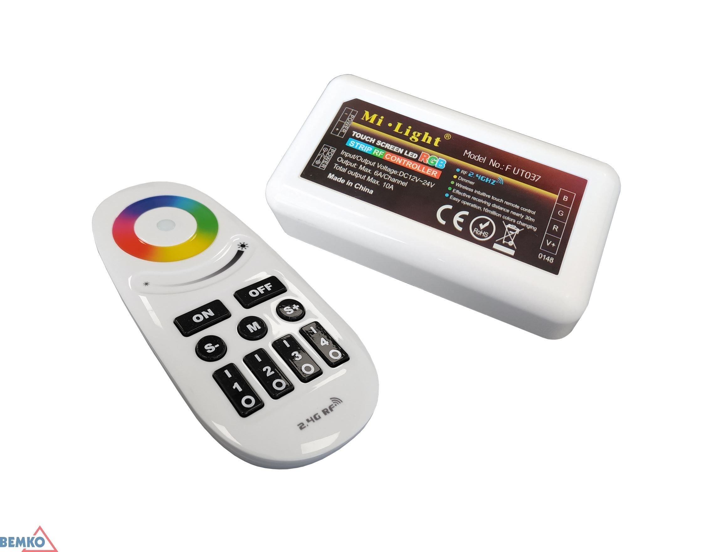 RGBW LED juostų valdiklis su nuotolinio valdymo pulteliu RF 2.4G DC 12-24V 10A