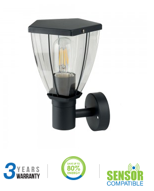 Sieninis lauko šviestuvas V-TAC, IP44, juodas. Įsukama E27 lemputė iš apačios.